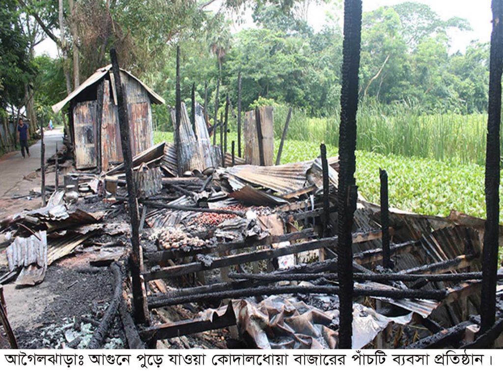 প্রসংগত, ২১জুন শুক্রবার গভীর রাতে বৈদ্যুতিক শর্টসার্কিট থেকে গোপাল ওঝার ভাড়াটিয়া সুমন পান্ডের কম্পিউটারের দোকান, অনিল শীলের ভাড়াটিয়া দেবাশীষ সরকারের মিস্টির দোকান, গোবিন্দ পান্ডের মুদি দোকান, ৬নং ওয়ার্ড আওয়ামী লীগ সভাপতি পল্লী চিকিৎসক সুধীর ওঝার চেম্বার ও ফার্মেসী ও পূর্ণ পান্ডের