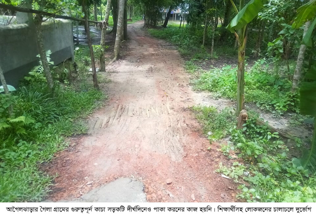 শত শত শিক্ষার্থীদের চলাচলে দুর্ভোগ সৃষ্টি হচ্ছে। একটু বৃষ্টি হলেই ওই সড়ক দিয়ে কেউ চলাচল করতে পারছে না। এলাকাবাসী সড়কটি পাকা করনের দাবিতে উপজেলা এলজিইডি বিভাগ ও সাবেক গৈলা ইউপি চেয়ারম্যানের কাছে লিখিত অভিযোগ দায়ের করা হলেও তারা কোন ব্যবস্থা নেয়নি।
