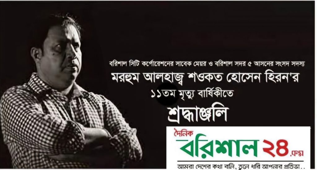 আধুনিক বরিশালের কারিগর সাবেক জনপ্রিয় মেয়র হিরন এর মৃত্যুবার্ষিকী আজ - দৈনিক বরিশাল ২৪ দৈনিক বরিশাল ২৪আধুনিক বরিশালের কারিগর সাবেক জনপ্রিয় মেয়র হিরন এর মৃত্যুবার্ষিকী আজ - দৈনিক বরিশাল ২৪