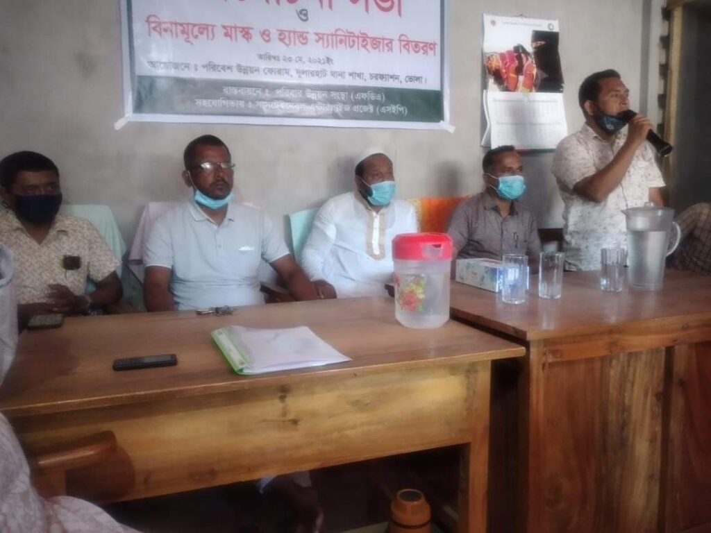 কভিড-১৯ ও দুর্যোগ মোকাবেলায় করনীয় শীর্ষক আলোচনায় মাস্ক ও হ্যান্ডস্যানিটাইজার বিতরণ