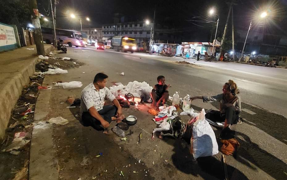 রাত দুইটা ত্রিশ মিনিট এক মানসিক ভারসাম্যহীন অসহায় মা ও তার ছেলের সাথে খোলা আকাশের নিছে রাস্তায় একসাথে তাদের রান্না করা খাবার খেলাম ৷ খাবার ছিলো সাদা ভাত ও বাজারের ফেলে দেওয়া পচাঁ বেগুন সিদ্ধ ৷