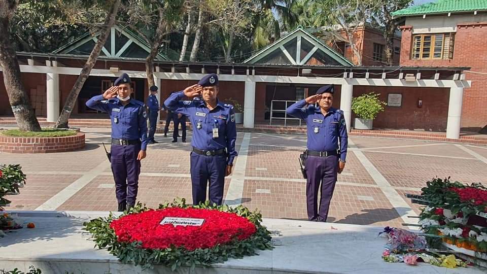 বঙ্গবন্ধুর সমাধিতে কুষ্টিয়া জেলার এসপি খাইরুল আলমের শ্রদ্ধা নিবেদন