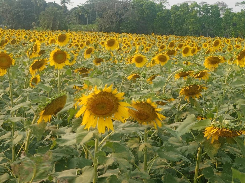 দৃষ্টিনন্দন হলুদে সূর্যমুখী বাগানের ফুলগুলি যেন সূর্যের দিকে তাকিয়ে হাসছে। তা দেখে আশপাশের কৃষকেরা অবাক। এতে সূর্যমুখী চাষে আগ্রহ দেখাচ্ছেন স্থানীয় কৃষকেরা।