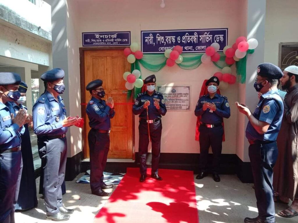 আজ শনিবার সকাল ১০ টায় ভোলা বোরহানউদ্দিন থানায় নবনির্মিত এ আধুনিক সার্ভিস ডেস্ক উদ্বোধন করা হয়। উদ্বোধন শেষে এক নারী ও শিশু প্রতিবন্ধীর পারিবারিক সমস্যা সমাধান করা হয়। এসময় ভোলা জেলা পুলিশ সুপার সরকার মোহাম্মদ কায়সার, লালমোহন সার্কেল (এডিশনাল এসপি) রাসেলুর রহমান, বোরহানউদ্দিন থানার অফিসার ইনচার্জ মাজহারুল আমিন বিপিএম,ওসি তদন্ত বশির আলম, সেকেন্ড অফিসার এসআই মোহাইমিনুল সহ বোরহানউদ্দিন থানার পুলিশ সদস্যরা উপস্থিত ছিলেন।