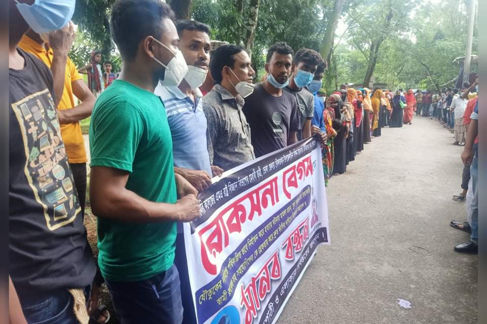 এসময় বক্তারা বলেন, যৌতুকের দাবিতে পরিকল্পিতভাবে নির্যাতন করে তার স্বামী রুবেল ও তার পরিবারের সদস্যরা রোকসানা বেগমকে হত্যা করে। এ ঘটনার একমাস পেরিয়ে গেলেও এখনও পর্যন্ত সঠিক তদন্ত হয়নি। তাই তারা বিক্ষোভ ও মানববন্ধন কর্মসূচির মাধ্যমে এ ঘটনার মামলা গ্রহণসহ সঠিক পুলিশি তদন্তের দাবী করেন। নিহত রোকসানার পরিবারের দাবি আরো বলেন,নিহত রোকসানাকে যৌতুকের দাবিতে পরিকল্পিতভাবে হত্যা করা হয়েছে। এই হত্যা-কানান্ডের সাথে জরিত রুবেলসহ সকলকে দ্রুত গ্রেপ্তার করে ফাঁসীর দাবি জানান তারা।