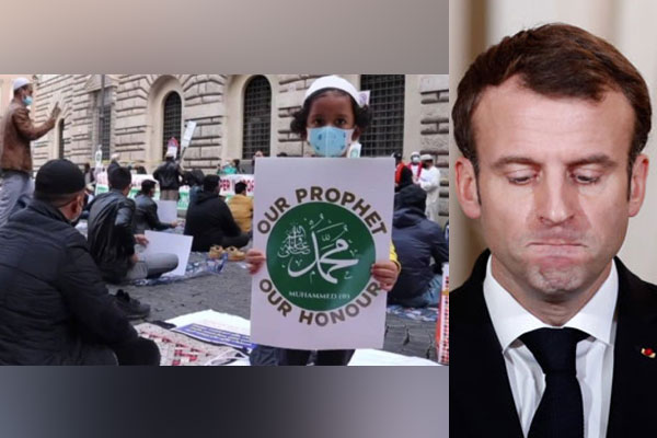 গতকাল শুক্রবার ইতালির রোমে ব্যতিক্রমী এ প্রতিবাদ অনুষ্ঠিত হয়। এসময় প্রতিবাদকারীরা ফ্রান্স দূতাবাস ঘেরাও করতে চাইলে পুলিশ বাধা দেয়। পরে দূতাবাসের সামনে ইতালি কমিউনিটির নেতারা প্রতিবাদ সভা করেন। বিভিন্ন স্লোগান সংবলিত প্ল্যাকার্ড, ব্যানার নিয়ে নারী-পুরুষসহ অসংখ্য মানুষ প্রতিবাদে অংশ গ্রহণ করেন। পরে প্রকাশ্যে আজান দিয়ে জুমার নামাজ আদায় করা হয়।