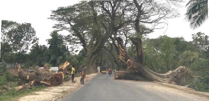 যশোর জেলা পরিষদ স‚ত্রে জানা গেছে, ঐতিহাসিক যশোর রোডের যশোর-বেনাপোল অংশের ৩৮ কিলোমিটার সড়কের দু’পাশে দুই শতাধিক শতবর্ষীরেইনট্রি গাছ রয়েছে। গত ২০ মে রাতে ঘ‚র্ণিঝড় আম্পান’র তাÐবে এইমহাসড়কের ২৩টি শতবর্ষী রেইনট্রি গাছ ভেঙে ও উপড়ে পড়েছে। ভেঙেপড়া গাছগুলো, ঝিকরগাছার হাজের আলী, বালিখোলা, গদখালি, বেনেয়ালি,নাভারণ ও শার্শা বাজার এলাকার।