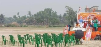 মঞ্চে বক্তব্য দিচ্ছেন নেতারা, মাঠে দর্শক নেই!